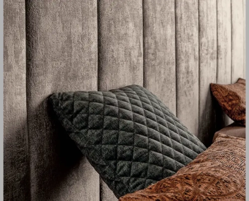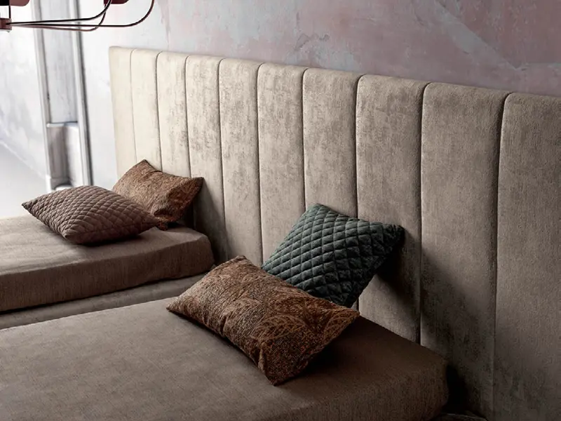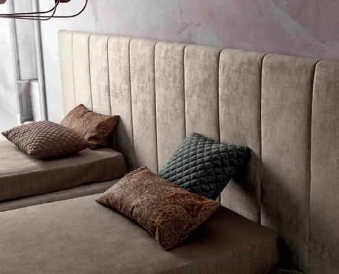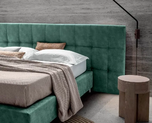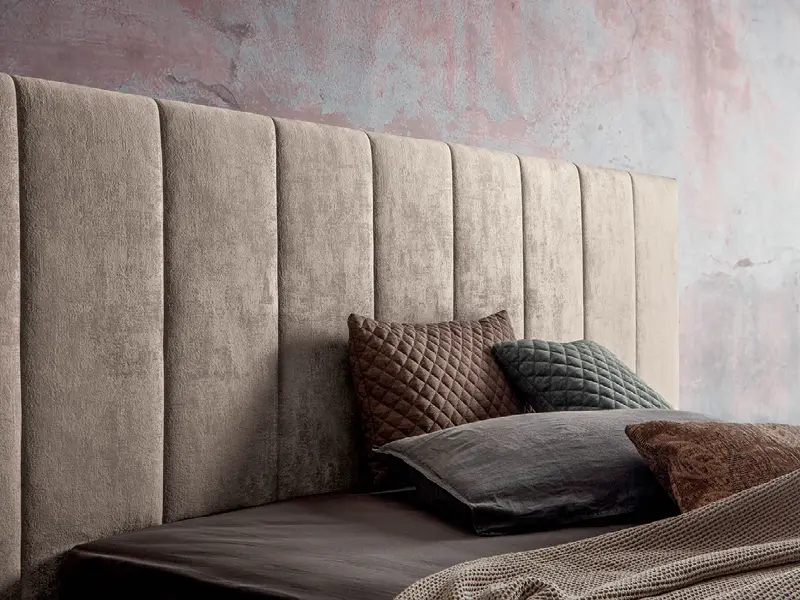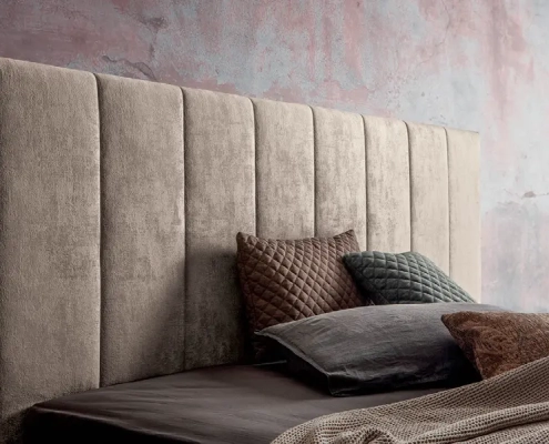 Eleganti, design a scacchi e a riga verticale; nascono già predisposte per essere fissate a parete, possono abbinarsi alle molteplici versioni di sommier, fissi o contenitori, o ai box.