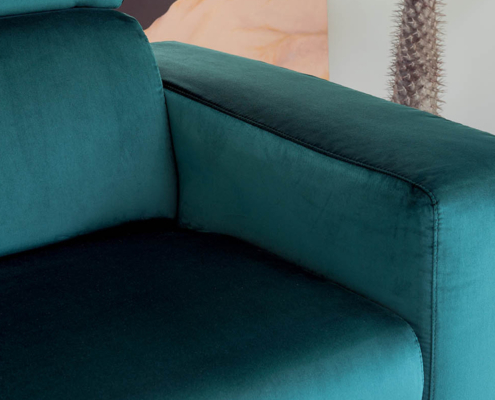 Schienale: in poliuretano espanso indeformabile e fibra di poliestere, poggiatesta con meccanismo a scatto in poliuretano espanso e fibra di poliestere.