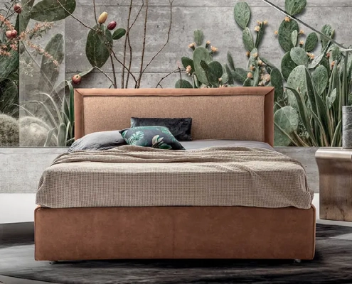 Letto dall’eleganza tradizionale; la testiera, imponente e raffinata come una cornice d’autore, definisce lo spazio con charm ed eleganza.