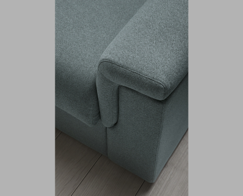 Struttura: in legno massello e agglomerato rivestita in poliuretano espanso e vellutino accoppiato ancorata al meccanismo tramite innesti a baionetta. Fondo a cinghie elastiche.