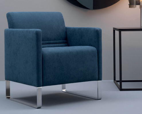 Versioni: Poltroncina con piedini a staffa cromati