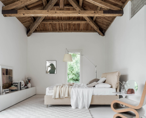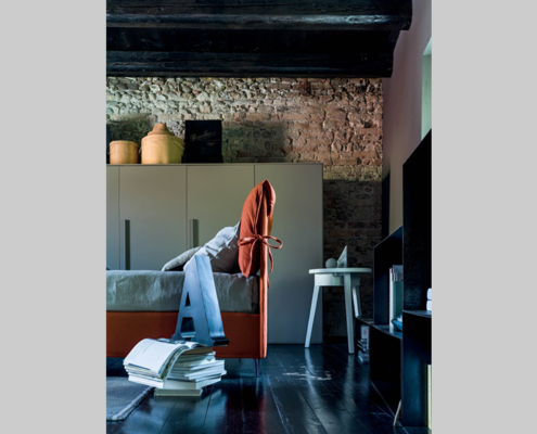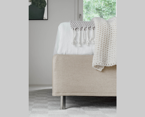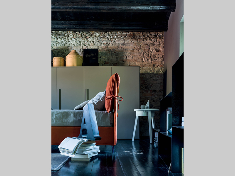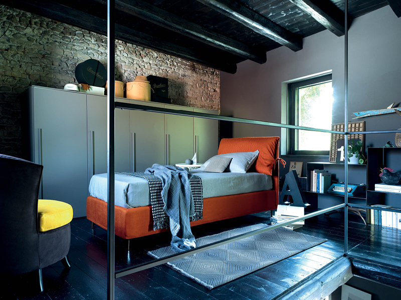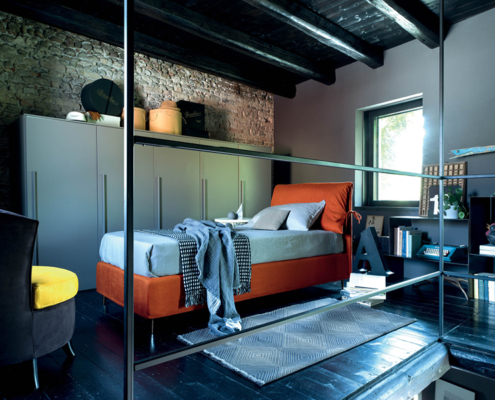 Letto moderno con 2 cuscini movibili pensato per uno stile moderno e funzionale.
