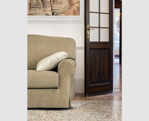 Struttura: In legno di abete, multistrato, parti in agglomerato e tamponamenti in faesite; rivestimento in poliuretano espanso e vellutino accoppiato.