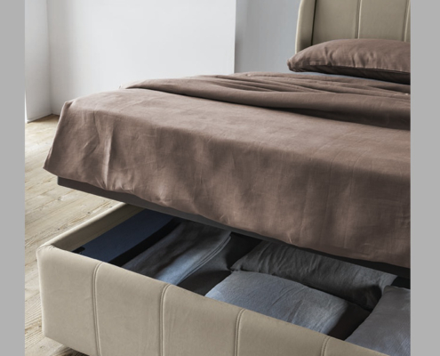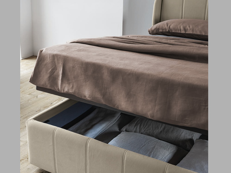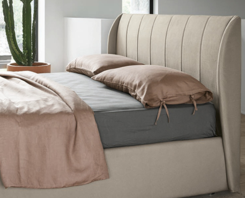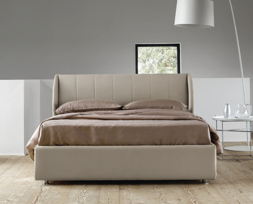 Letto disponibile in diverse misure e con diversi rivestimenti. E’ caratterizzato dalla testiera a linee verticali e da un piacevole bordo in rilievo.