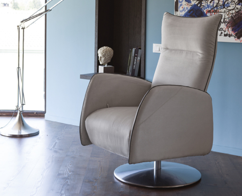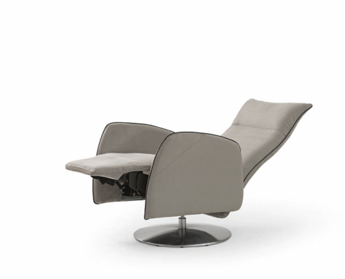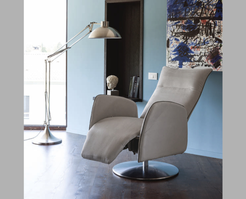 Meccanismo Relax manuale, apertura pediera con pistone a gas, schienale regolabile dotato di snodo a frizione.