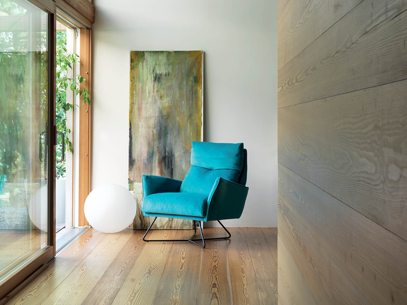 Struttura: In massello di legno rivestito in poliuretano espanso e fibra di poliestere.
