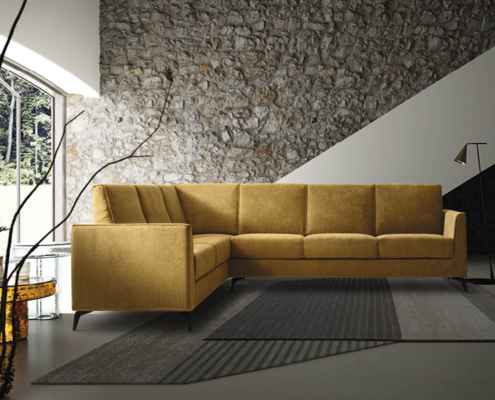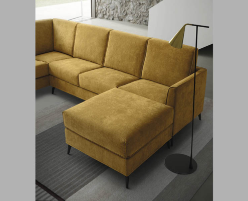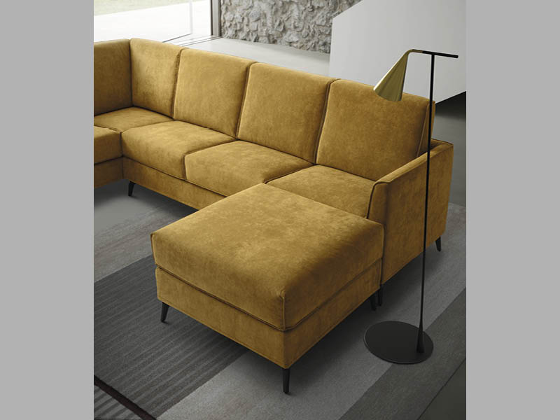 Struttura: In agglomerato di legno e masselli d’abete rivestito in espanso da 8 mm e vellutino accoppiato. Fondo a cinghie elastiche intrecciate.